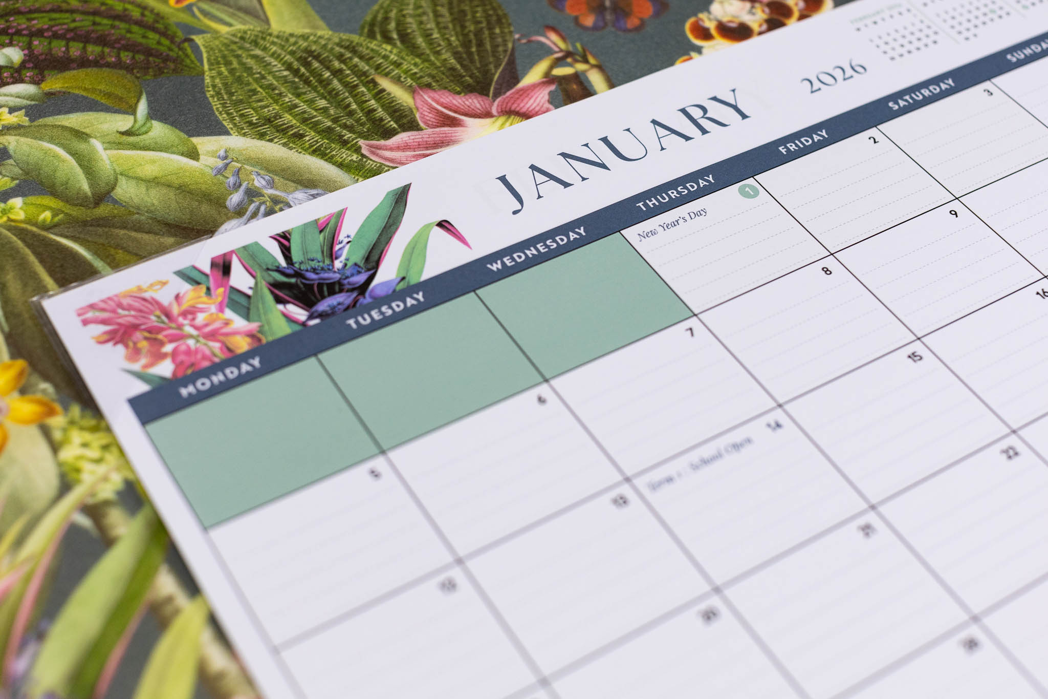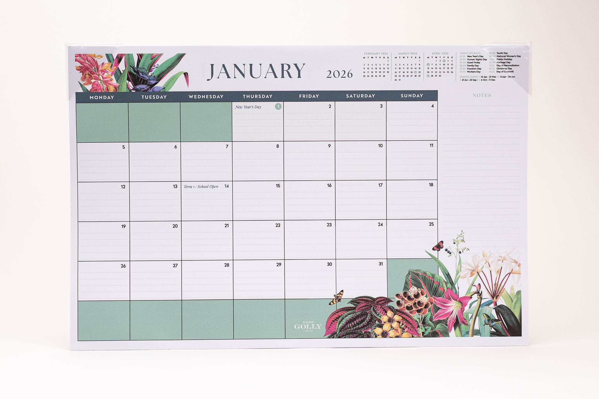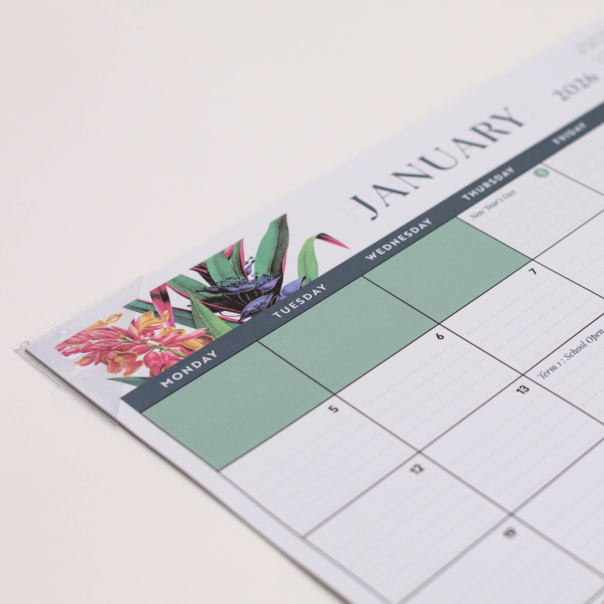 Desk Pad Calendars 2026. A beautiful spin on an old classic. The design features a month at a glance design, public holidays, school holidays, important dates and ample writing space. Spoil yourself in 2026 – because no planner needs to be ordinary.